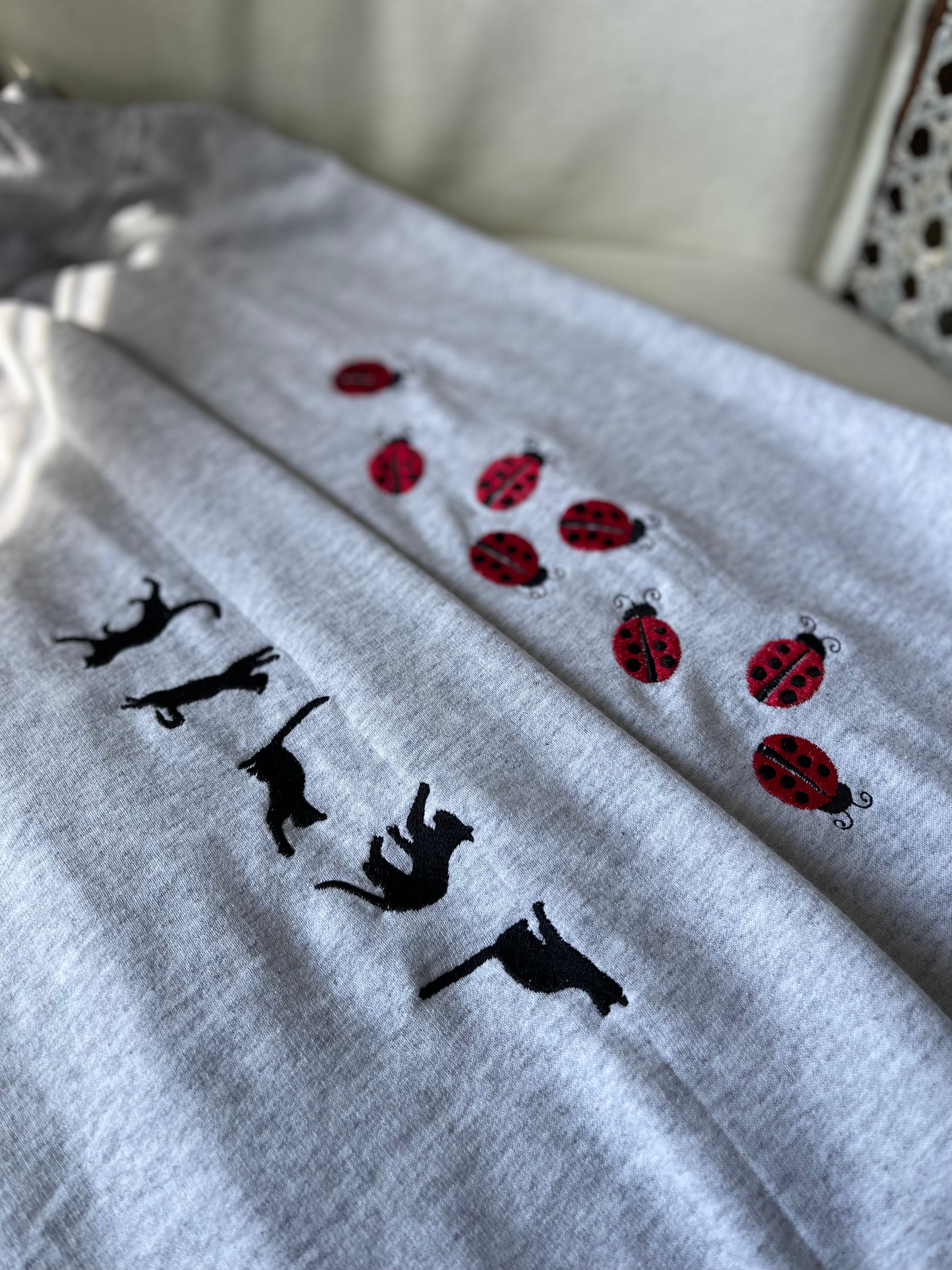 Embroidery on both sleeves with ladybugs and black cats MTO (Made To Order )