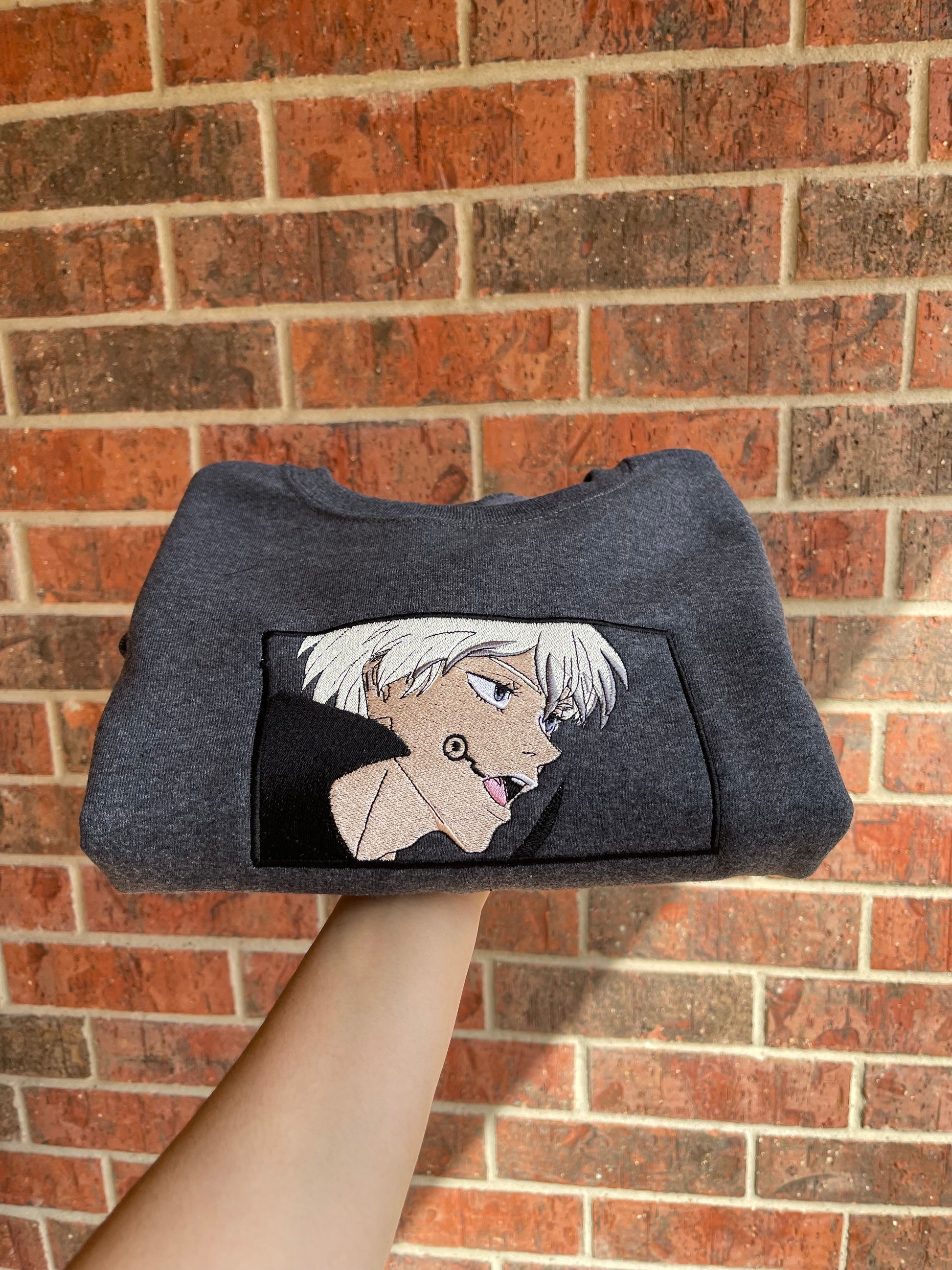 Placed on a 50/50 heavy blend crewneck/hoodie.